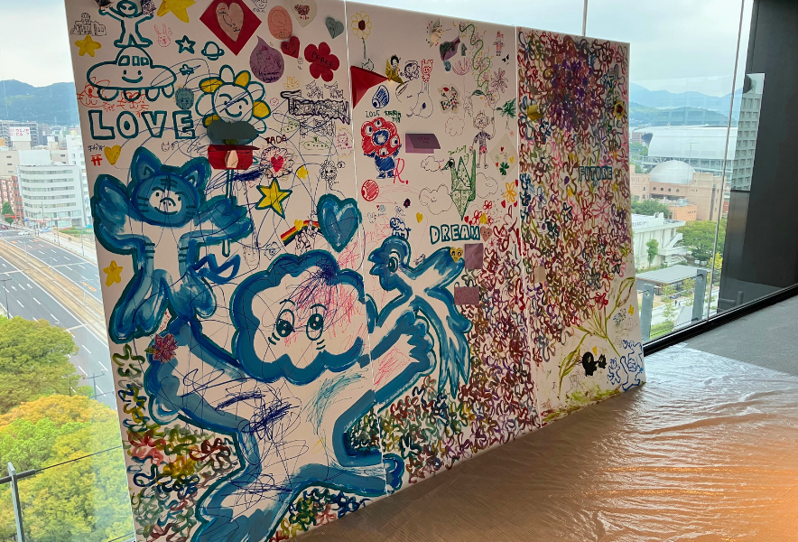 「最初はどれくらいの方が参加してくれるのかなと少し心配していましたが、日曜日には一日で100人くらいの方に描いていただき、『結構参加してくれるな』と思い安心しました。大人から子供まで、海外の方も描いてくれて、嬉しかったです!」