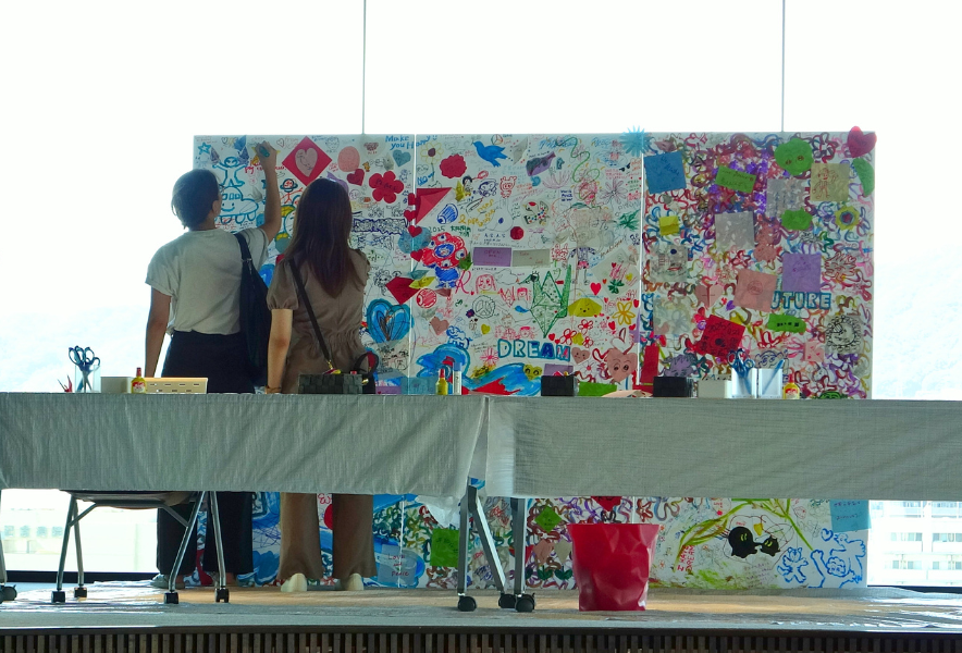イベントのテーマは「みんなで大きな花を咲かせよう」。来場者の絵やメッセージを花びらに見立てて、花びらが集まって大きなお花になる、という想いが込められています。