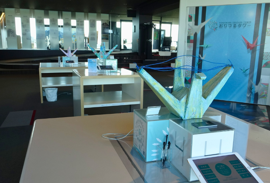 「大半のお客様が、原爆ドームや平和記念資料館で歴史や事実を知った上でおりづるタワーに来ると思います。おりづるタワーは(未来を志向するという意味で)それらとの対比なので、いまお客様が穏やかに景色を見たり、アートを鑑賞できるというのは、翻って日本が平和であるということを感じて頂ければと思います。単純な平和論や未来論を押し付ける訳ではなく、自分がなぜこの場所に、こういう風に穏やかにいられるのか?ということを今回のアートイベントも含めて自然と感じて頂きたいですし、おりづるタワーはそういう場所だと思っています。」