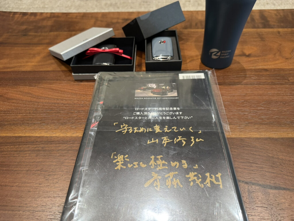 納車の節目に、「MAZDA SPIRIT RACING ROADSTER 12R」とともに刻まれる特別な一冊。